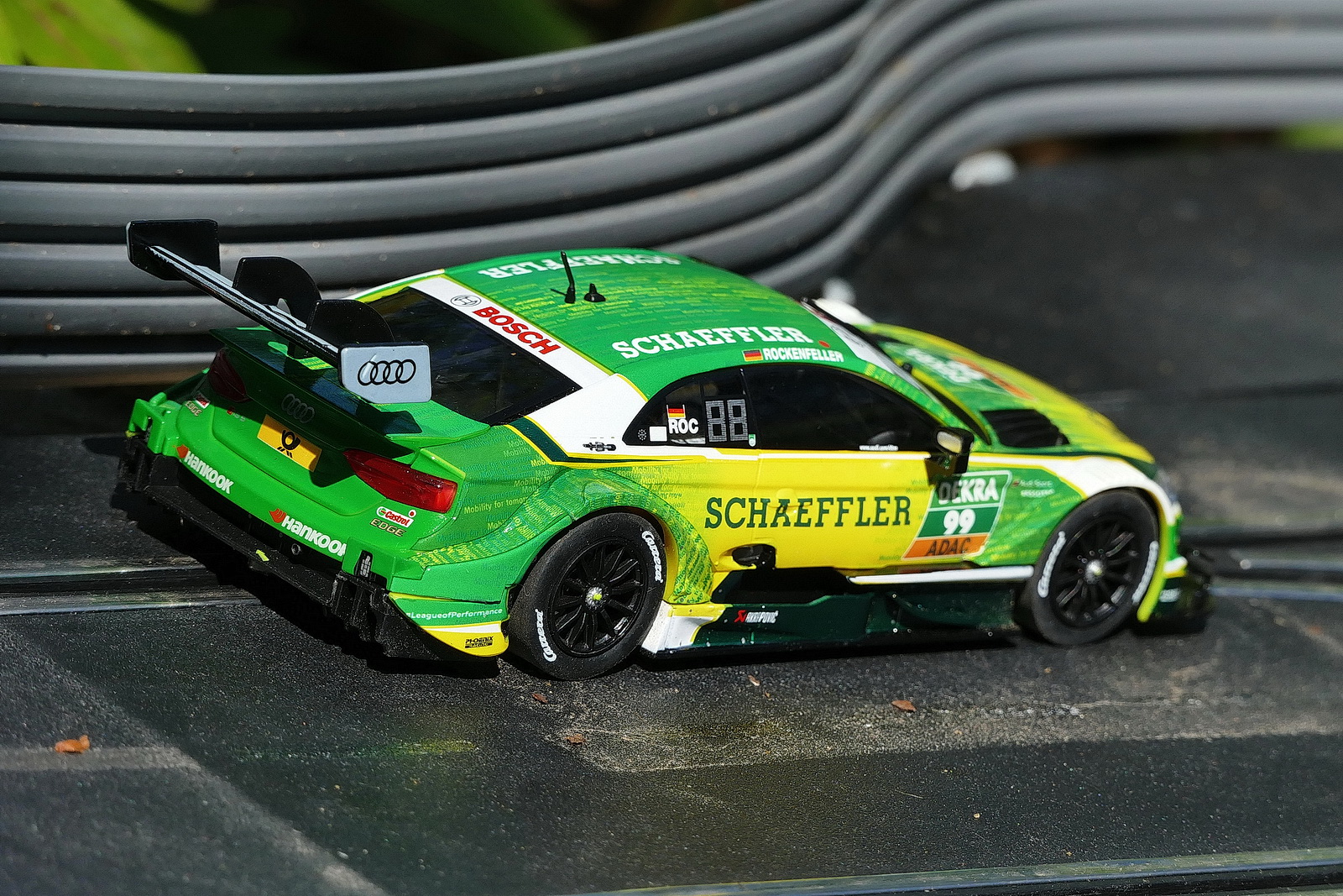 2016, beim DTM-Rennen in Nürnberg, war die Firma Carrera mit einer großen Bahn im Fahrerlager vertreten. Irgendwie kam ich dann auf die Idee, mal unsere alte "Racy-Bahn" aus dem Keller zu holen und aufzubauen. Natürlich war das kein Vergleich zu Carrera und somit hab ich dann mit Unterstütung meiner Frau mich entschieden, die Bahn zu verkaufen und auf Carrera umzustellen. Immer mehr Zubehör und neue Autos wurden gekauft und die Bahn öfter im Wohnzimmer als "Teppich-Rutscher" aufgebaut. Irgendwann kam auch der Wunsch, eine Bahn fest aufzubauen. Der Platz im Haus ist aber eingeschränkt. In Lüdenscheid hat ein Slotter eine Bahn im Garten aufgebaut, die er in den warmen Monaten betreibt. Mein Sohn und ich haben sie uns angeschaut und waren begeistert. Trotzdem hat es noch etwas gedauert, bis wir auch den Mut gefasst haben, den Garten umzugestalten. 2019 ist es dann passiert und wir haben es nicht bereut. Die Bahn wurde inzwischen umgebaut, zusätzlich haben wir 2021 einen kleinen Platz für eine Kellerbahn im Haus gefunden.